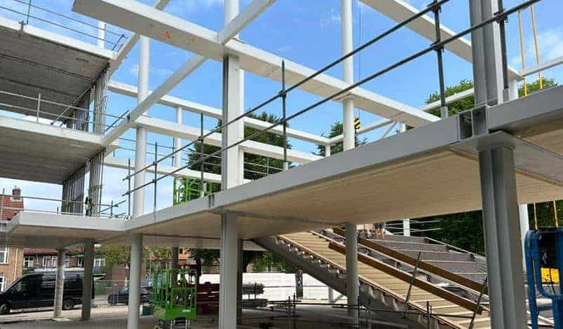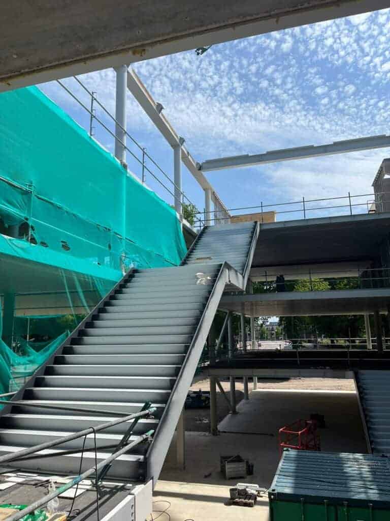 Hierbij weer een update van de nieuwbouw. De stalen hoofdtrap is geplaatst in het atrium, alle houten kanaalplaatvloeren zijn gelegd,…