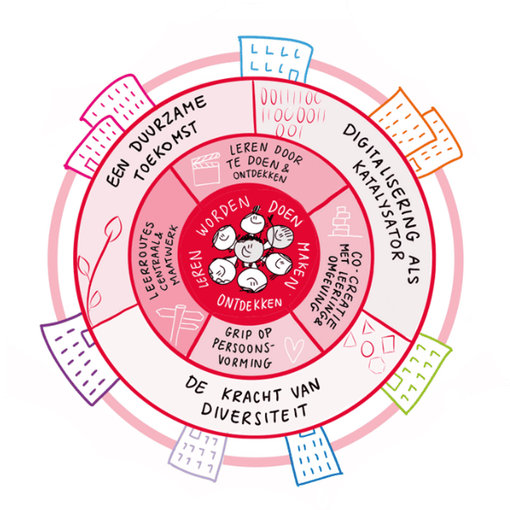 Om onze missie en visie te realiseren, bestaat de koers uit vier onderwijskundige pijlers. Hiermee realiseren we het ‘doen, maken, ontdekken, leren en worden’ waarmee we onze leerlingen de beste opleiding bieden om een duurzame toekomst tegemoet te gaan.